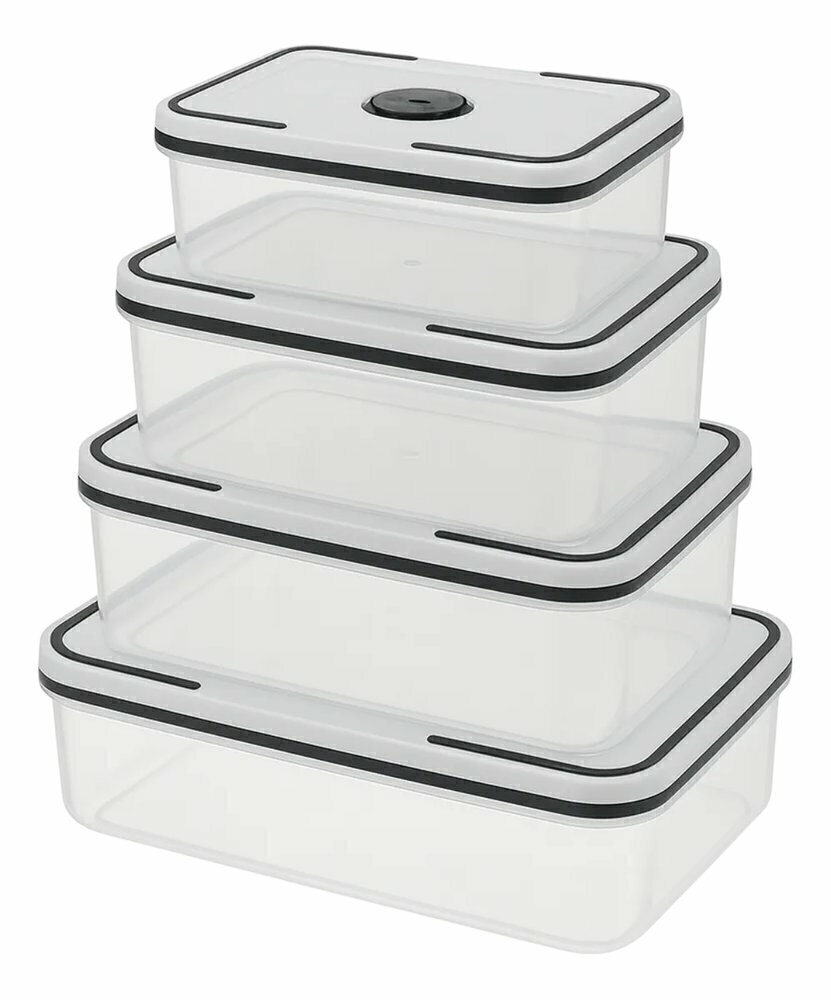 As tampas contam com vedação hermética e válvula de pressão, garantindo fechamento seguro, conservação prolongada dos alimentos e proteção contra umidade, odores e contaminações externas.